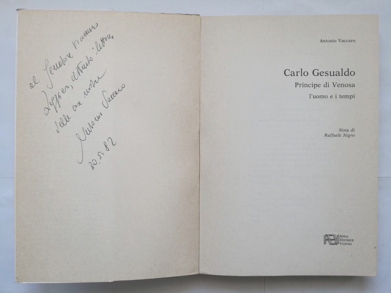 CARLO GESUALDO di Antonio Vaccaro 1982 Appia Venosa dedica dell'autore Libro