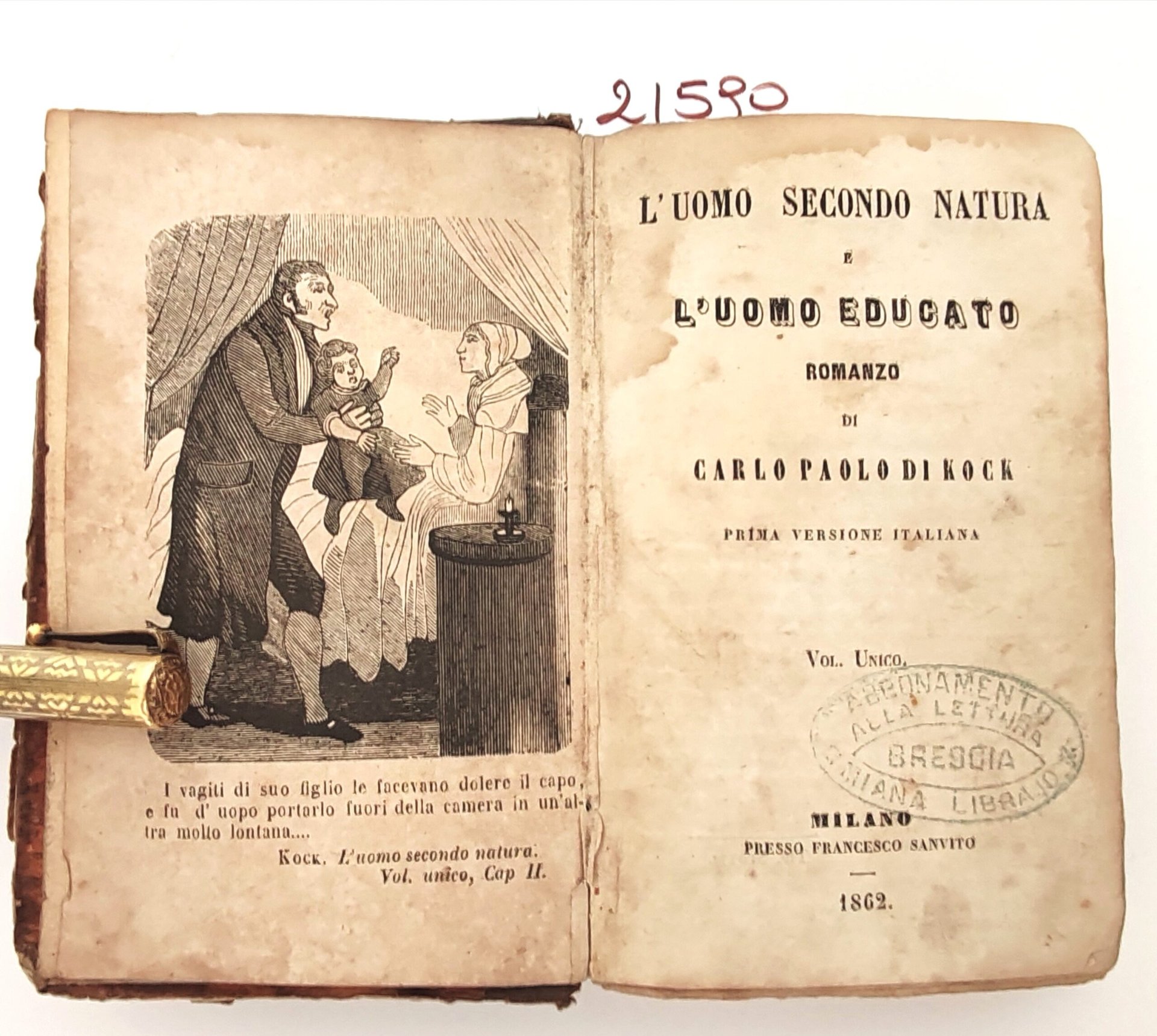 Carlo Paolo di Kock L'uomo secondo natura e l'uomo educato romanzo prima versione italiana volume unico Milano Francesco SanVito 1862