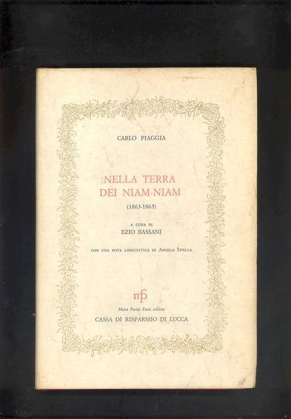 IN 8°, pp.LXIV, 214, INDICE.LEGATURA EDITORIALE IN PIENA TELA RIGIDA ROSSA CON TITOLO AL DORSO + SOVRACOPERTINA CON TITOLO ENTRO CORNICE. 25 FIGURE in b/n. NEL TESTO, <BR>XLII ILLUSTRAZIONI in b/n. f.t.a pp. IN ALLEGATO, CARTA + v.r. DISEGNATA DAL PIAGGIA, RILEVATA IN TERRA DI NIAM - NIAM. VOLUME FUORI COMMERCIO, PER LA CASSA DI RISPARMIO DI LUCCA DA I " VIAGGI DI CARLO PIAGGIA NELL'AFRICA CENTRALE ". A CURA DI EZIO BASSANI, CON UNA NOTA LINGUISTICA DI ANGELO STELLA. CARLO PIAGGIA ( 1827-1882 ) ESPLORATORE ITALIANO IN AFRICA CENTRALE. OTTIMA CONSERVAZIONE.
