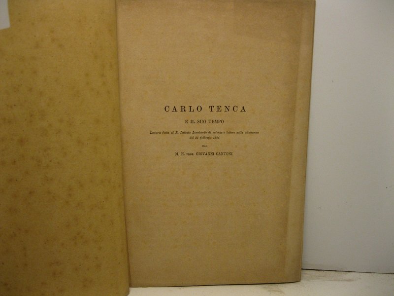 In 8, pp. 13 + (3). Mancanza all'ang. est. sup. del p. ant. Fioriture. Br. muta coeva. Estratto dai Rendiconti del R. Istituto Lombardo. Ritratto di Carlo Tenca in cui prevale la figura del patriota e dell'uomo pubblico. Letterato e politico (Milano, 1816 - ivi, 1883). Dopo aver preso parte alle Cinque giornate di Milano, e' direttore del 'Ventidue marzo', il giornale del governo provvisorio. Ritornata la dominazione austriaca diffonde dalle colonne del settimanale 'Il Crepuscolo' le idee di liberta' e di indipendenza. Il governo di Vienna gli toglie allora la direzione del periodico per il rifiuto di riferire la notizia della visita a Milano dell'Imperatore d'Austria. Liberata la Lombardia, e' eletto deputato di Milano per sei legislature; in qualita' di assessore del comune cura il riordinamento delle scuole elementari, ed e' anche membro del Consiglio Superiore della Pubblica Istruzione.