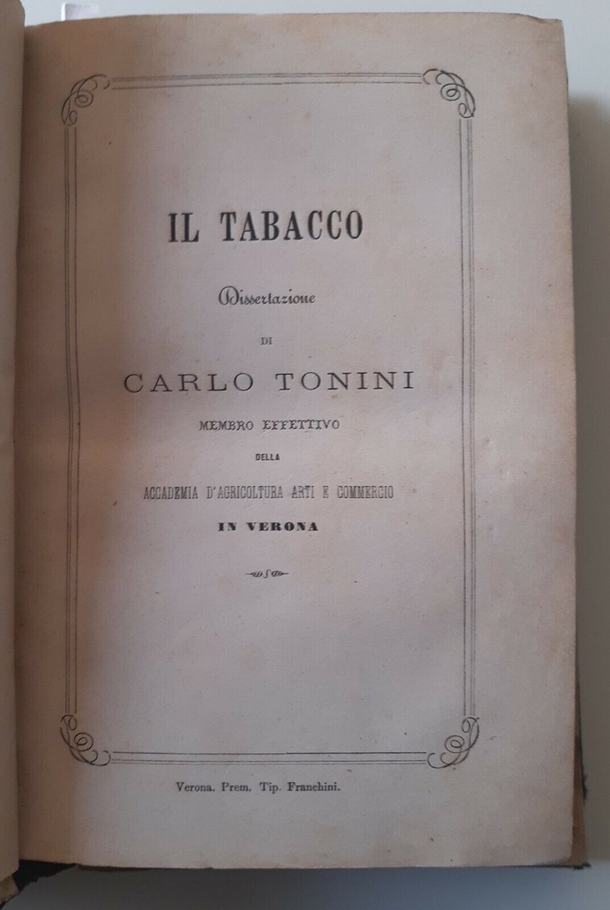 CARLO TONINI E LE SUE OPERE FILOSSERA TABACCO OSSERVAZIONI AGRARIE MISCELLANEA
