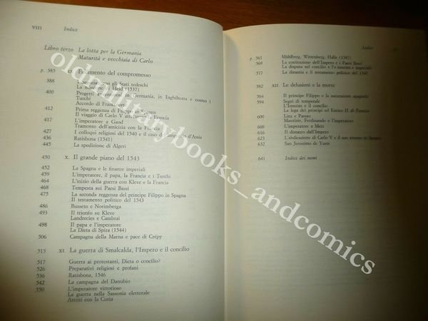 "DESCRIZIONE: Einaudi Torino 1961 I^ Ed., br. ed. con velina trasparente, e cofanetto ed. ill. a col. pp. XXXVI+657, in 8°, con fascetta editoriale. Prima edizione italiana di uno dei capolavori della storiografia relativa a Carlo V e alla sua epoca. "Il quadro ch'egli ha disegnato di Carlo V è il più ricco, pieno, preciso che oggi si possa avere" La figura di Carlo V domina tutta la prima metà del Cinquecento e affascina ancora oggi, per la vastità del suo impero e perché in lui convissero l'uomo del Medioevo e quello del Rinascimento. Dagli anni giovanili fino al desolato tramonto nella solitudine di Yutse, Brandi fa rivivere in tutta la sua complessità il personaggio di Carlo V, il suo carattere, il suo mondo interiore. CONDIZIONI: Perfette, volume mai aperto, bianco e pulito, PURTROPPO PARTE FINALE ELLA SOVRACC. PARZIALMENTE ROTTA. PESO / WEIGHT: 900 gr. without package"