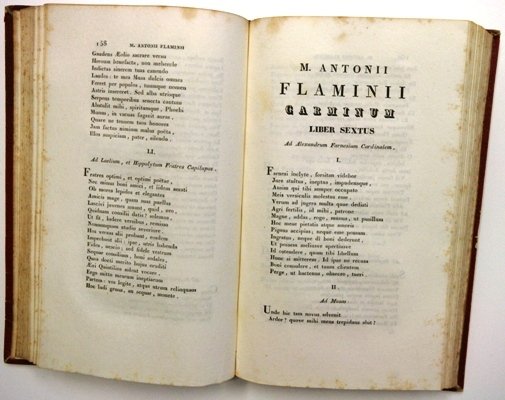 rilegato in mezzapelle,integro ed in ottimo stato, pag 487; raccolta di Carmina dei 3 Flamini: padre figlio e nipote !
