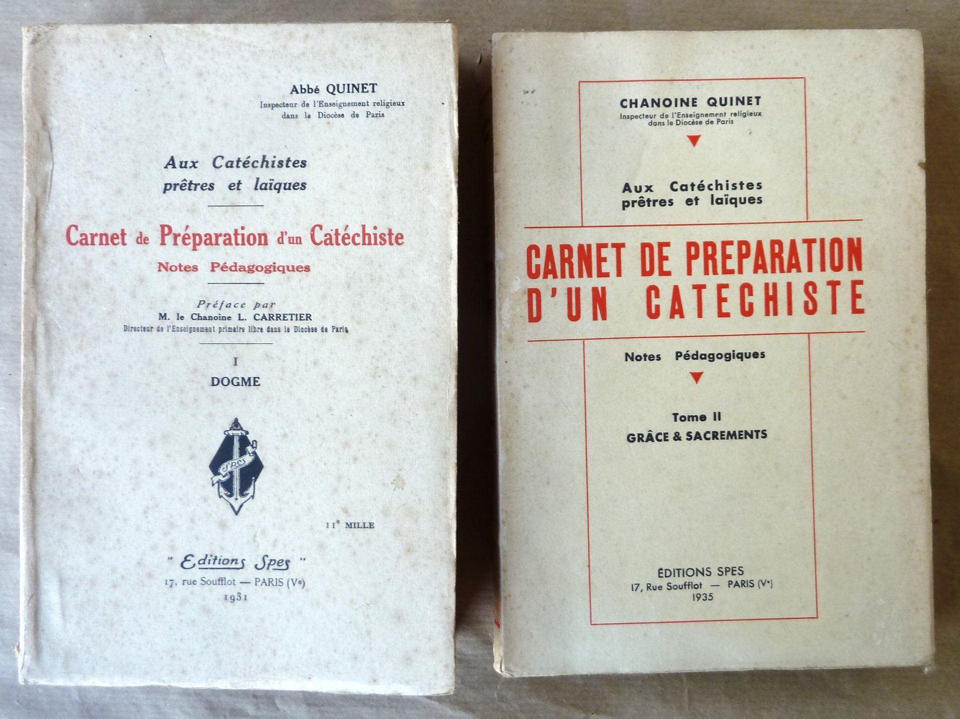 Carnet de Préparation d'un Catéchiste. Notes Pédagogiques. T0ME I Dogme; TOME II Grâce et Sacrements;