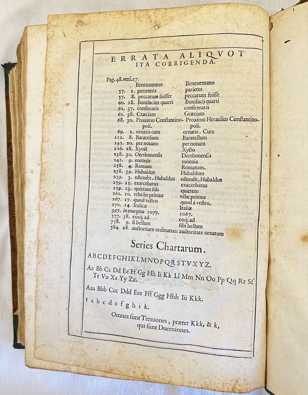 Prima edizione del 1580 di questa monumentale opera sulla storia d'Italia scritta da Carlo Sigonio (Modena 1524- Ponte Basso (Modena) 1584) storico e letterato insegnante di Umanità presso l'Università di Bologna. L'opera è composta da due parti legate insieme, ognuna con proprio frontespizio, ed è completa. Il primo tomo è l'edizione del 1580. La lettera del tipografo all'editore è stata legata alla fine del primo tomo mentre l'indice dello stesso alla fine del volume. Il secondo tomo è la rara edizione veneziana del 1591, lo stampatore Franciscum Senensem. L'autore dedicò gli ultimi anni della sua vita alla stesura dell'opera che tratta meticolosamente il periodo che va dall'anno 565 al 1286. Vignetta xilografia in ogni frontespizio. Al tomo primo: Figura femminile loricata: Bologna che tiene col braccio sinistro la cornucopia e con il destro lo stendardo con la scritta Libertas. Motto: Bononia docet. In buone condizioni. Copertina in mezza pelle ottocentesca con titolo in oro al dorso in buone condizioni generali con lievi usure ai margini e dorso. Legatura in discrete condizioni con lievi rotture. All'interno le pagine si presentano in buone condizioni con rare fioriture. Segni di tarlo marginali alle prime 12 carte. Restauro al verso del frontespizio e alla carta A2. In folio. Dim. 31,5x22x7,5 cm. Pp. 666+(2)+(8)+234+(24)+(65). Peso Kg. 2,500.First edition of 1580 of this monumental work about the history of IKtaly written by Carlo Sigonio (Modena 1524- Ponte Basso (Modena) 1584) historian and letterate teacher of humanity in the University of Bologna. The work is made up of two tomes, each one with its own title page bound in the same volume and it is complete. The first tome is the edition of 1580. The letter of typographer has been bound in the end of the first tome, the index at the end of the volume. The second tome is the sacrce venetian edition of 1591, the publisher Franciscum Senensem. The author dedicated the last years of his life to the work that describes the history of Italy from 565 to 1286. In good conditions. Half leather cover of 19th century in good general conditions lightly worn in the extremities. Binding in fair conditions with light cracks. Inside pages are in good conditions with occasional foxing. Worming in the edges of the first 12 pages. Restauration in the verso of the title page and input page a2. In folio. Dim. 31,5x22x7,5 cm. Pp. 666+(2)+(8)+234+(24)+(65). Weight Kg. 2,500.