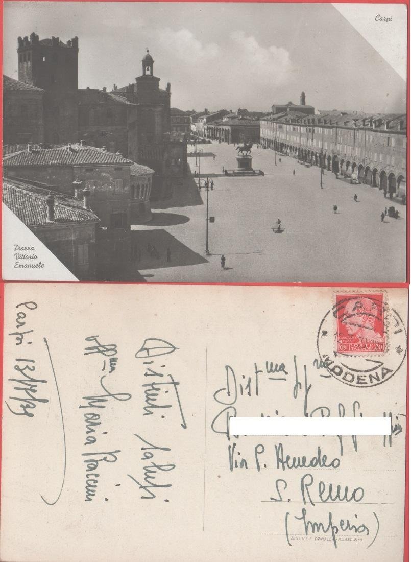 Carpi. Piazza Vittorio Emanuele. Viaggiata 1939. Fotografica