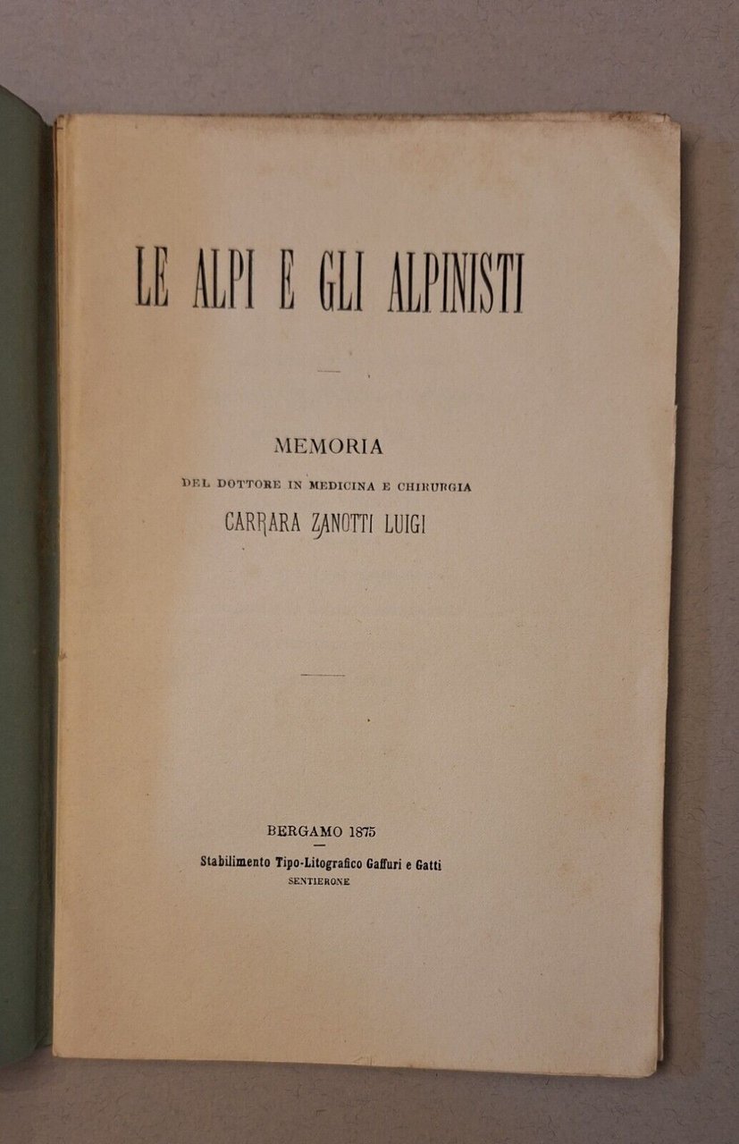 CARRARA ZANOTTI LE ALPI E GLI ALPINISTI BERGAMO 1875 TIP. GAFFURI GATTI