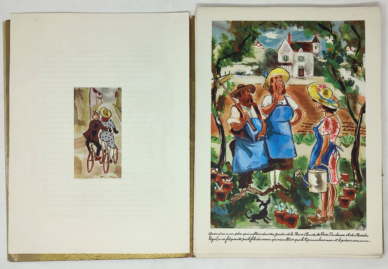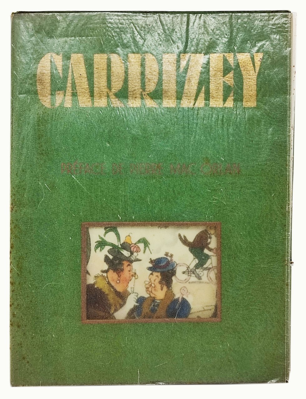 Anno: 1943 (30 Septembre). Lingua del testo: francese. pagine non numerate (frontespizio illustrato a colori + 4 pagine di testo + 10 tavole illustrate a colori + 40 tavole in nero). Stato di conservazione: Decisamente buono. Si segnalano minuscole macchioline gialle e qualche strappetto marginale sulla camicia editoriale ma volume in ottimo stato di conservazione. Brossura editoriale con copertina flessibile (che funge da cartella per le tavole contenute, sciolte, al suo interno) con piccola finestra intagliata che rende visibile una simpatica illustrazione a colori stampata sul frontespizio. Il volume è costituito da 50 tavole (oltre che dal frontespizio e da 4 pagine di testo) a piena pagina (ognuna delle quali stampata su un foglio sciolto con retro bianco). All'interno di ogni tavola è stampata la firma di Robert Carrizey (famoso illustratore umoristico francese che lavorò per i più noti giornali del tempo quali Le Rire, Ric et Rac, Le Pele Mele, La vie parisienne).