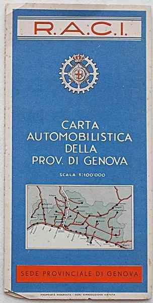 Carta a colori in scala 1:100.000 di cm. 62,5 x 85 (compilata dal Cav. G. Mori) e al verso pianta a colori della città di Genova; ripiegata all'origine nella sua copertina a colori. Su carta forte. VG.