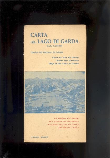 IN 8° ( cm.23 X 12,5 ), COPERTINA EDITORIALE ILLUSTRATA ( LA RIVIERA DEL GARDA ), CON TITOLO. CARTA DEL LAGO DI GARDA IN SCALA 1 : 150.000, COMPLETA DELL'INDICAZIONE DEI CAMPING. ALL'INTERNO, CARTA + v.r. a col. DEL LAGO DI GARDA. DIMENSIONI DELLA CARTA,<BR>mm.640 X 510. PERFETTA CONSERVAZIONE.ID 3250