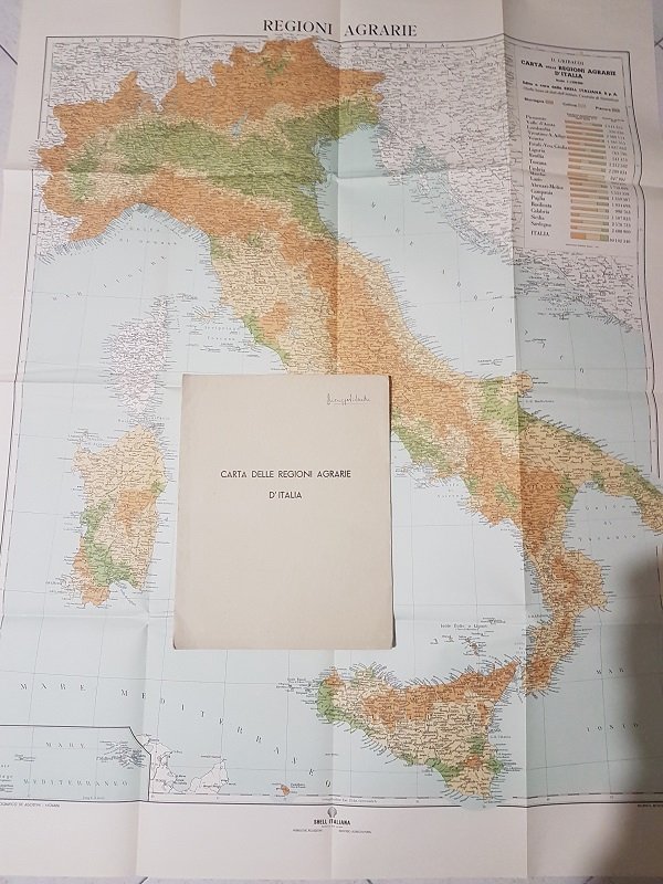 GRANDISSIMA CARTINA PIU' VOLTE RIPIEGATA CON ASTUCCIO DI CARTONCINO CARTA delle REGIONI AGRARIE d'ITALIAshell - deAgostini sulla base di dati dell'istituto centrale di statistica scala 1:1 250 000
