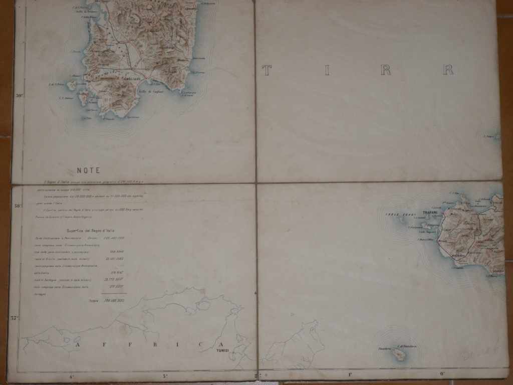 Carta geografica dimostrativa del Regno d'Italia e delle regioni limitrofe compilata dal topografo Pio Galli - La carta completa è divisa in 8 parti: questa è la parte del Sud-ovest del Regno d'Italia (Parte sud della Sardegna/Trapani)