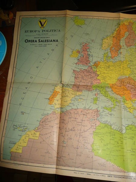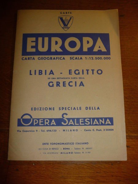 CARTA GEOGRAFICA EUROPA LIBIA EGITTO E GRECIA OPERA SALESIANA s.d. MA DOPO 1940