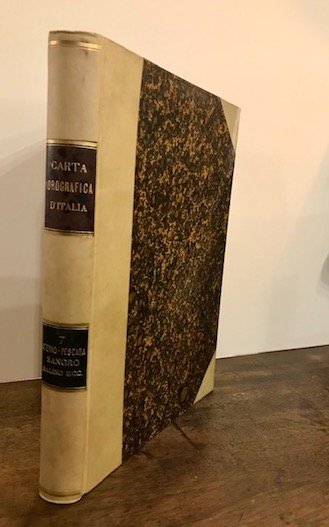 8vo (cm. 25,5), 224 pp. con 2 tavv. a colori (’Carta litologica del bacino del fiume Aterno-Pescara’ e ‘Carta idrografica.’) e 7 tavv. f.t. (segue con proprio frontespizio) Idem, Sangro, Salino, Vomano, Tronto, Tordino e Vibrata, Ibidem 1903, VIII-209(1) pp. con 4 tavv. a colori ripiegate (’Carta litologico-idrografica del bacino del fiume Sangro’, ‘Carta. del fiume Salino’, ‘Carta. del fiume Vomano’ e ‘Carta. del fiume Tronto’). Legatura coeva in mz. pergamena con angoli. Fili e titoli oro su doppio tassello in pelle al ds. Ottimo stato di conservazione. Prima edizione. Provenienza: Collezione Moretti, Roma (timbretto ex libris sul frontespizio).