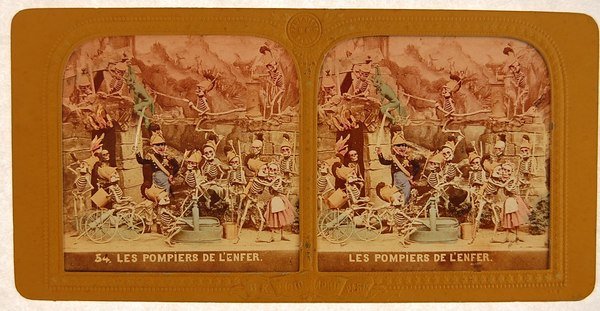 Carta stereoscopica della serie Diableries 54. Les pompiers de lenfer