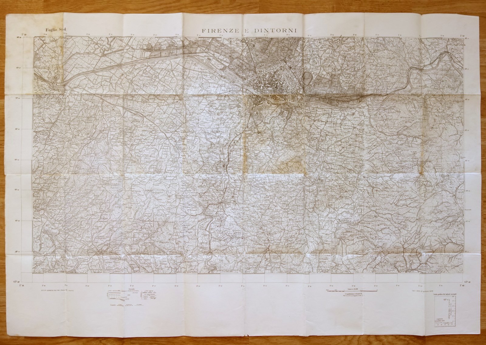 Grande carta topografica, Firenze e dintorni foglio sud scala 1:25000 IGM, 1937; grande carta topografica in b/n, rip. pi√π volte. Cm 77,5x115. Condizioni di conservazione Buone condizioni con tracce d'uso, alcune lievu bruniture, SC03.D18428 N