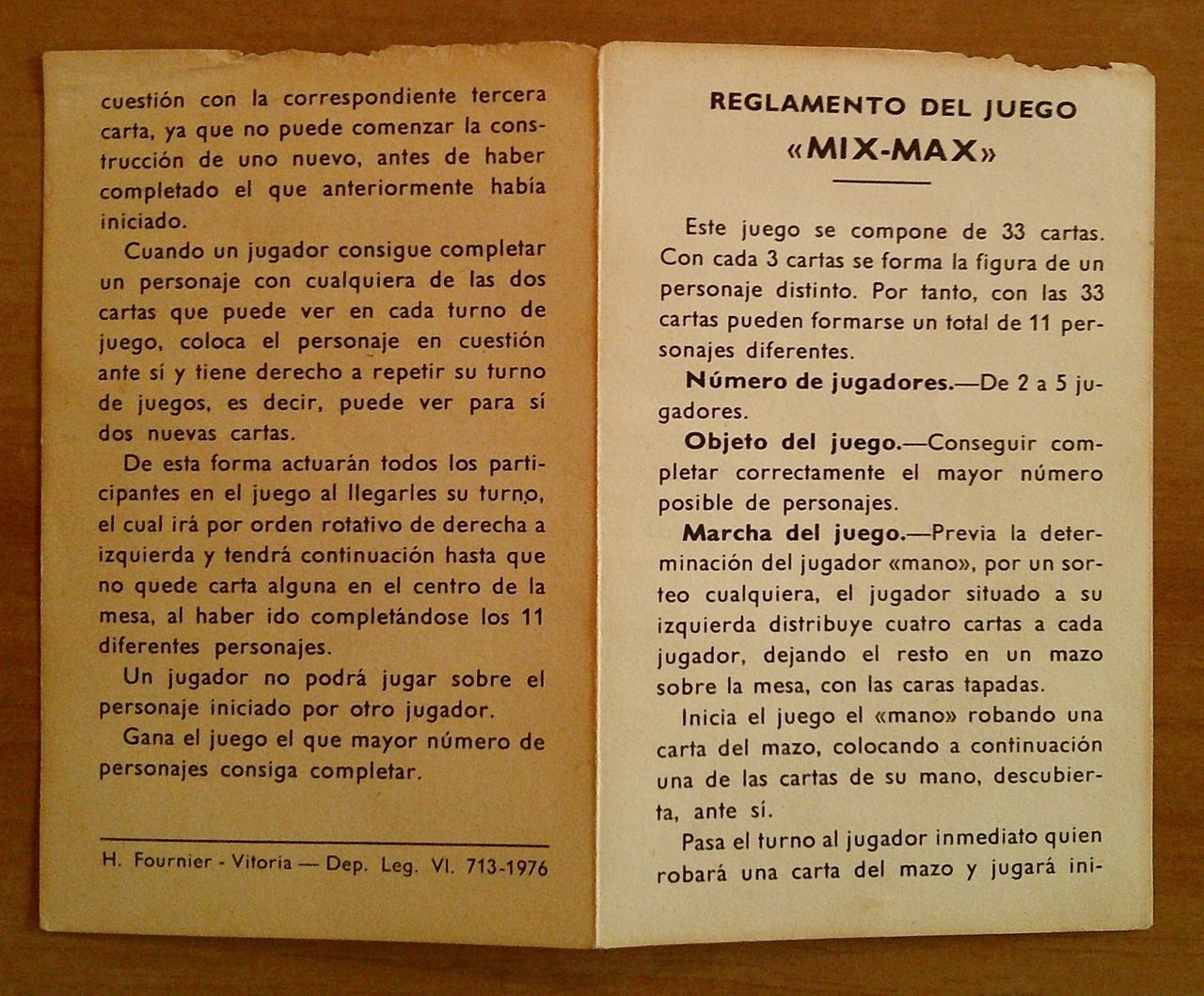 Serie Completa di 32 Carte più Istruzioni. Ed. Fournier, Vitoria (Spagna), 1975. 32 carte da gioco più carta delle Istruzioni in Spagnolo in Scatola contenitrice originale. Lievi segni del tempo alla scatolina ma Carte Nuove. Scatola 6x9x1. Rare e in Ottimo stato. , Ottimo (Fine)