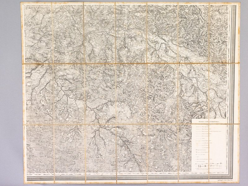 Carte entoilée dépliante du Dépôt de la Guerre au format 72 x 87 cm., Imp. Kaeppelin, Paris, s.d. (1858), sous étui cartonné, de la Carte du Département de la Gironde extrait de la Carte topographique de la France, levée par les Officiers d'Etat-Major et gravée au Dépôt général de la guerre, Paris, 1858 Bon état (étui un peu frotté)