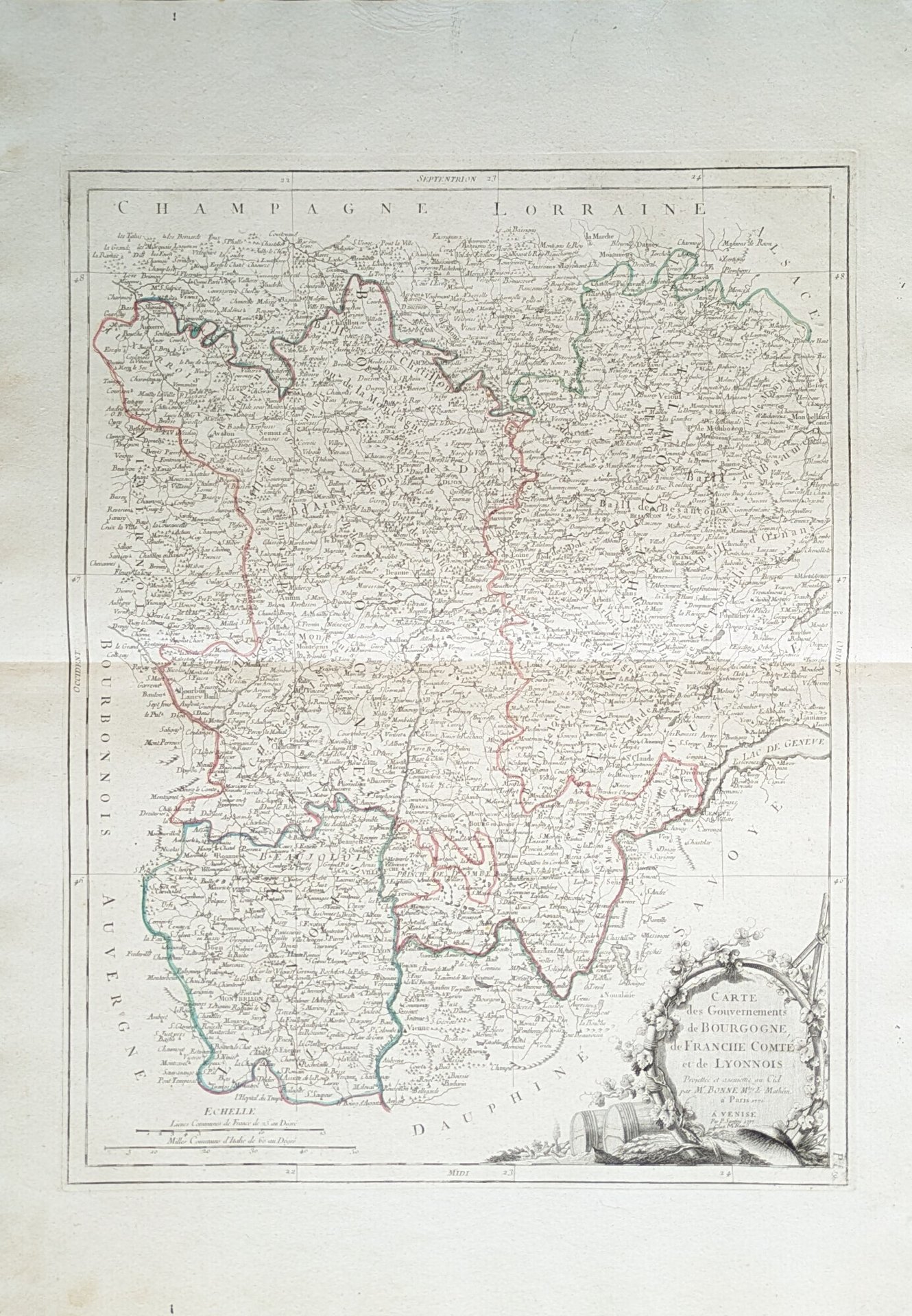 CARTE DES GOUVERNEMENTS DE BOURGOGNE, DE FRANCHE COMTE' ET DE LYONNOIS