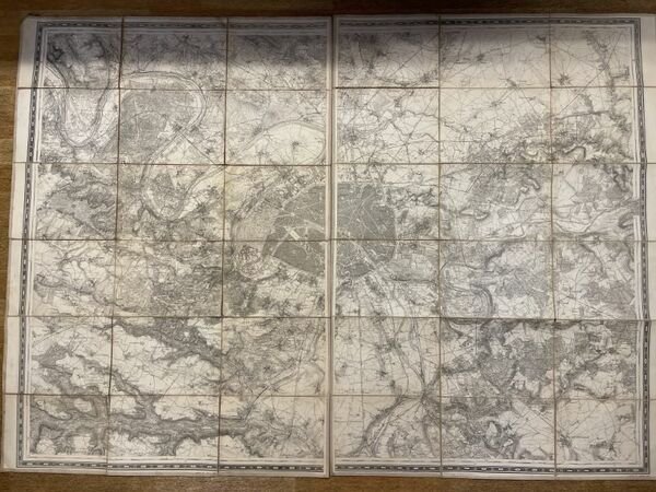 Carte entoilée des environs de Paris, en deux pans, est et ouest