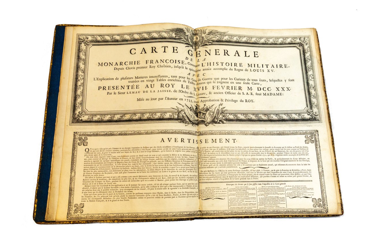 Carte generale de la monarchie francoise, Contenant l'histoire militaire, Depuis Clovis premier Roy Chretien, jusqu'a la quinzieme annee accomplie du Regne de Louis XV.