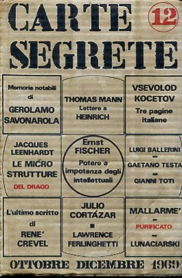 Carte segrete. Ottobre - Dicembre 1969. N. 12. Rivista trimestrale di lettere ed arti