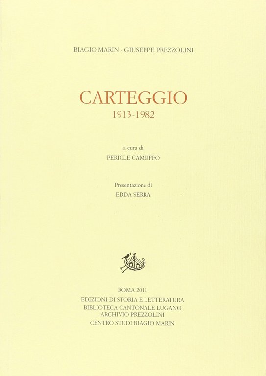 Biagio Marin, Giuseppe Prezzolini Carteggio 1913-1982. , Storia e Letteratura 2011, 472 Timbro omaggio al piatto inferiore (62288)