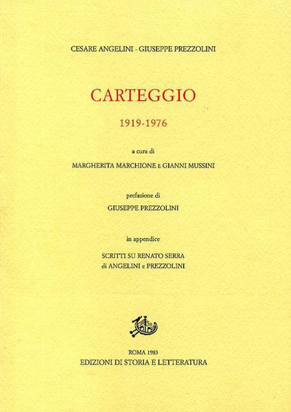 A cura di Margherita Marchione, Gianni Mussini. Prefaz.di Giuseppe Prezzolini. In Appendice scritti su Renato Serra. Roma, Ediz.di Storia e Letteratura 1983, cm.18x25, pp.XV,388, 12 tavv.bn.ft. brossura Intonso. STATO: USATO, COME NUOVO. EAN: 9788884981738