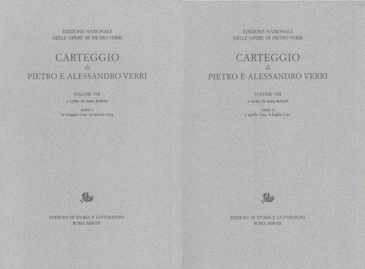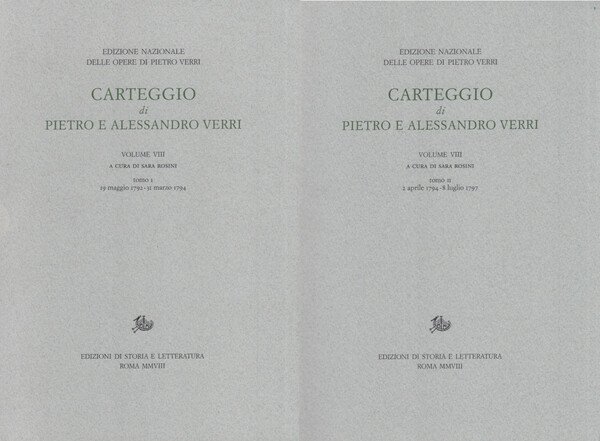 2 Voll. In-8 (Cm 24,5 x 17), pp. XXIX-1421, brossura editoriale. Edizione nazionale delle opere di Pietro Verri. Volume VIII a cura di Sara Rosini. Tomo I: 19 Maggio 1792 - 31 Marzo 1794 - Tomo II 2 Aprile 1794 - 8 Luglio 1797. COME NUOVO