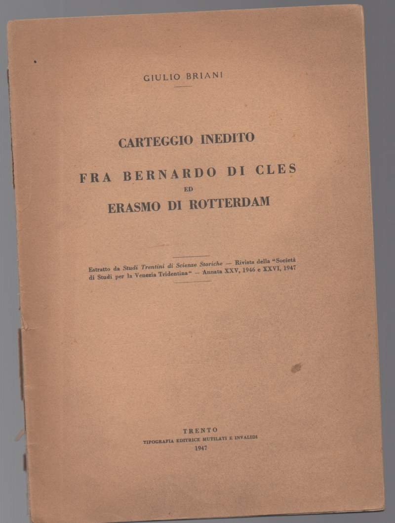 CARTEGGIO INEDITO FRA BERNARDINO DI CLES ED ERASMO DI ROTTERDAM (1947)