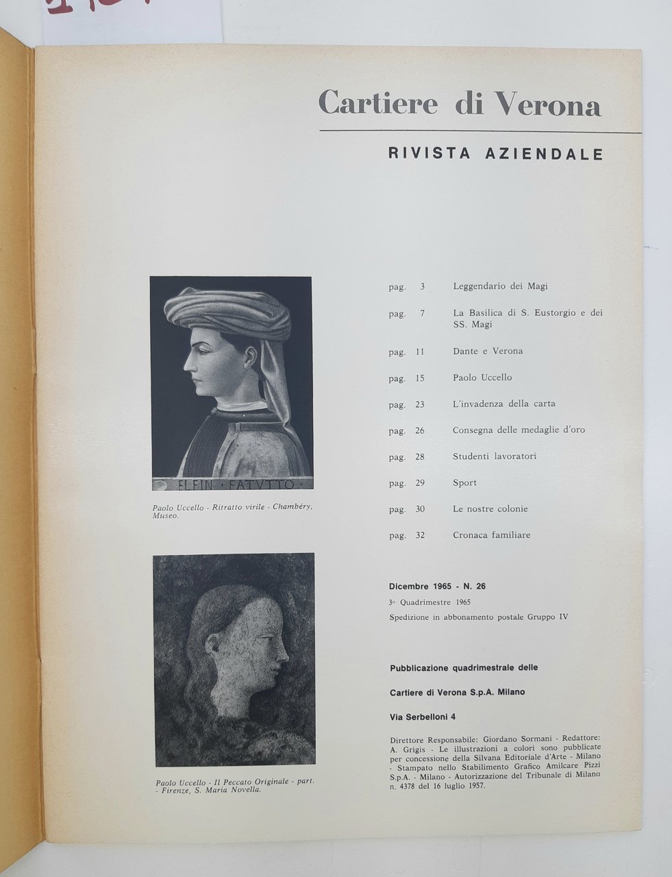 Cartiere di Verona rivista aziendale numero 26 dicembre 1965
