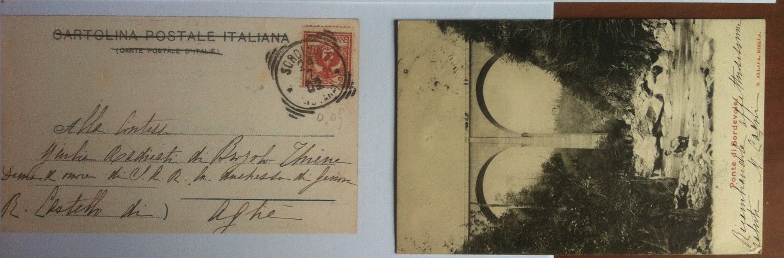 Cartolina originale 1902Ponte di Sordevole - BiellaDestinata alla Contessa Giulia Radicati di Bruzolo viaggiata - in buono stato E12784