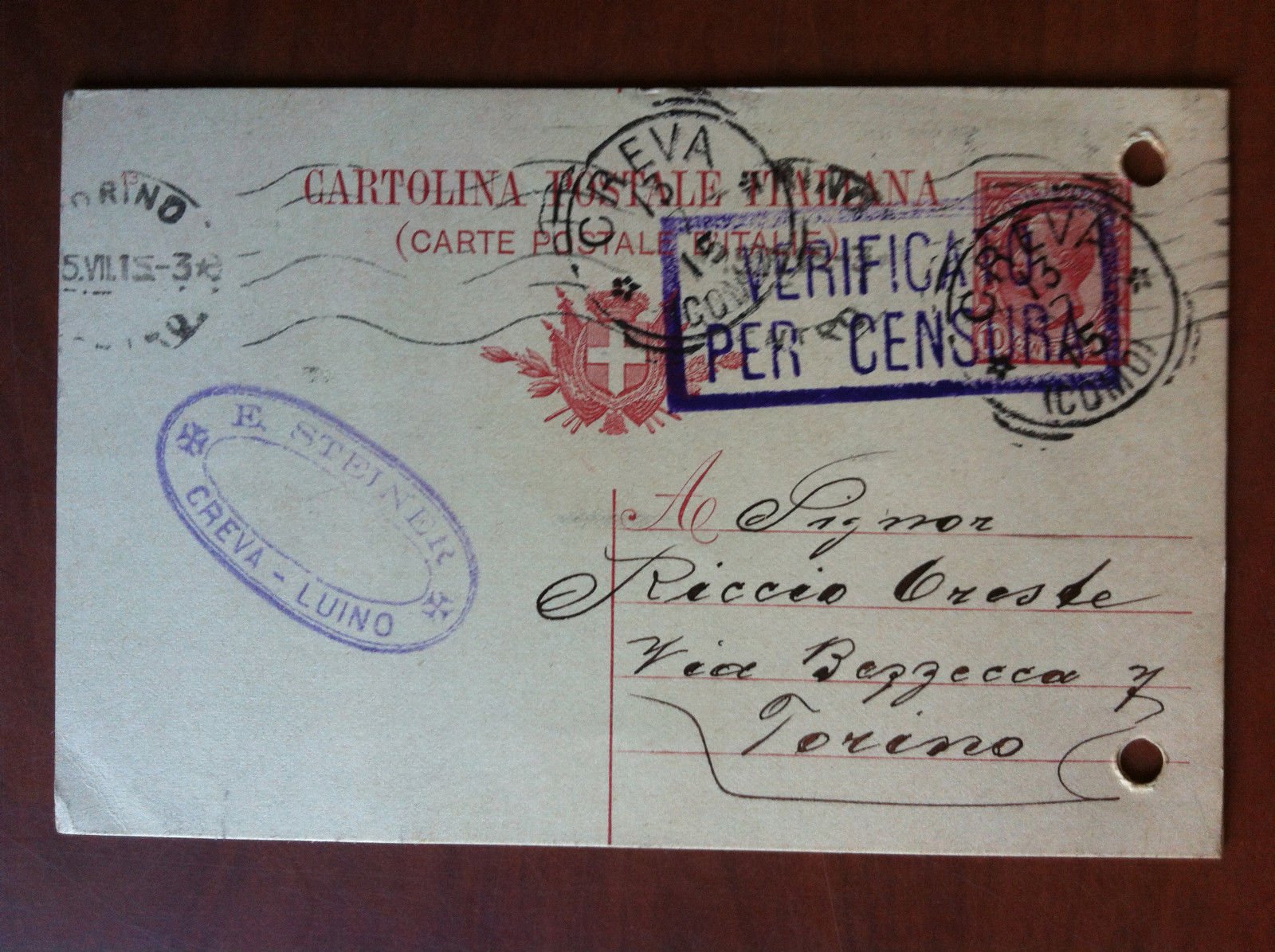 Cartolina 1919CREVA - COMOVRIFICATA PER CENSURAE. Steiner - Creva - Luino viaggiata - in buono stato E11715