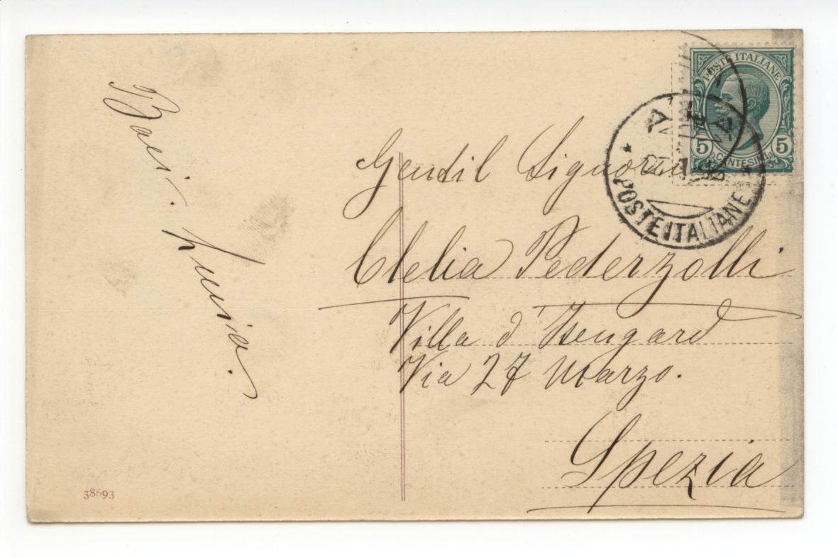 Cartolina originale, Ala Piazza Antonio Cantore S. d. (primi anni del Novecento); cartolina originale ill. in b/n.; cm 9x14; figurata e animata; viaggiata. Condizioni di conservazione Cartolina molto ben conservata (vedi foto). CART.1303G