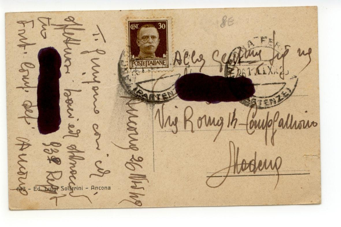Cartolina originale, Ancona Via 29 Settembre 1942; cartolina originale ill. in b. n. Cm 13,5x8,5. Figurata; viaggiata. Condizioni di conservazione Cartolina ben conservata. Uno strappetto al margine sinistro. I nomi al retro sono stati coperti (vedi foto). CART.1888G