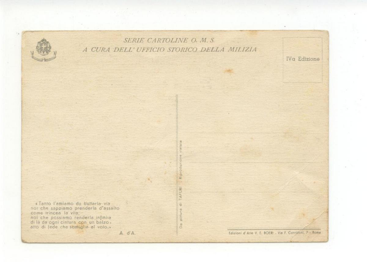 Cartolina originale, .Atto di Fede Che Somiglia al Volo. S. d. (anni quaranta); cartolina originale ill. a col. Cm 15x10,5 (formato grande). Non viaggiata. Condizioni di conservazione Cartolina ben conservata. Una lieve pieghetta agli angoli (vedi foto). Originale. CART.2935G