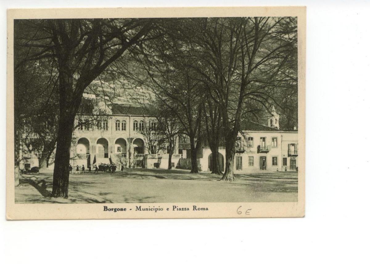 Cartolina Borgone Municipio e Piazza Roma 1939 viaggiata Torino