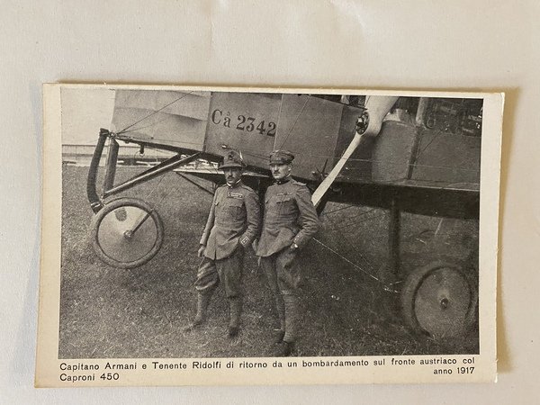 Cartolina Capitano Armani e Tenente Ridolfi col Caproni 450 anno 1917