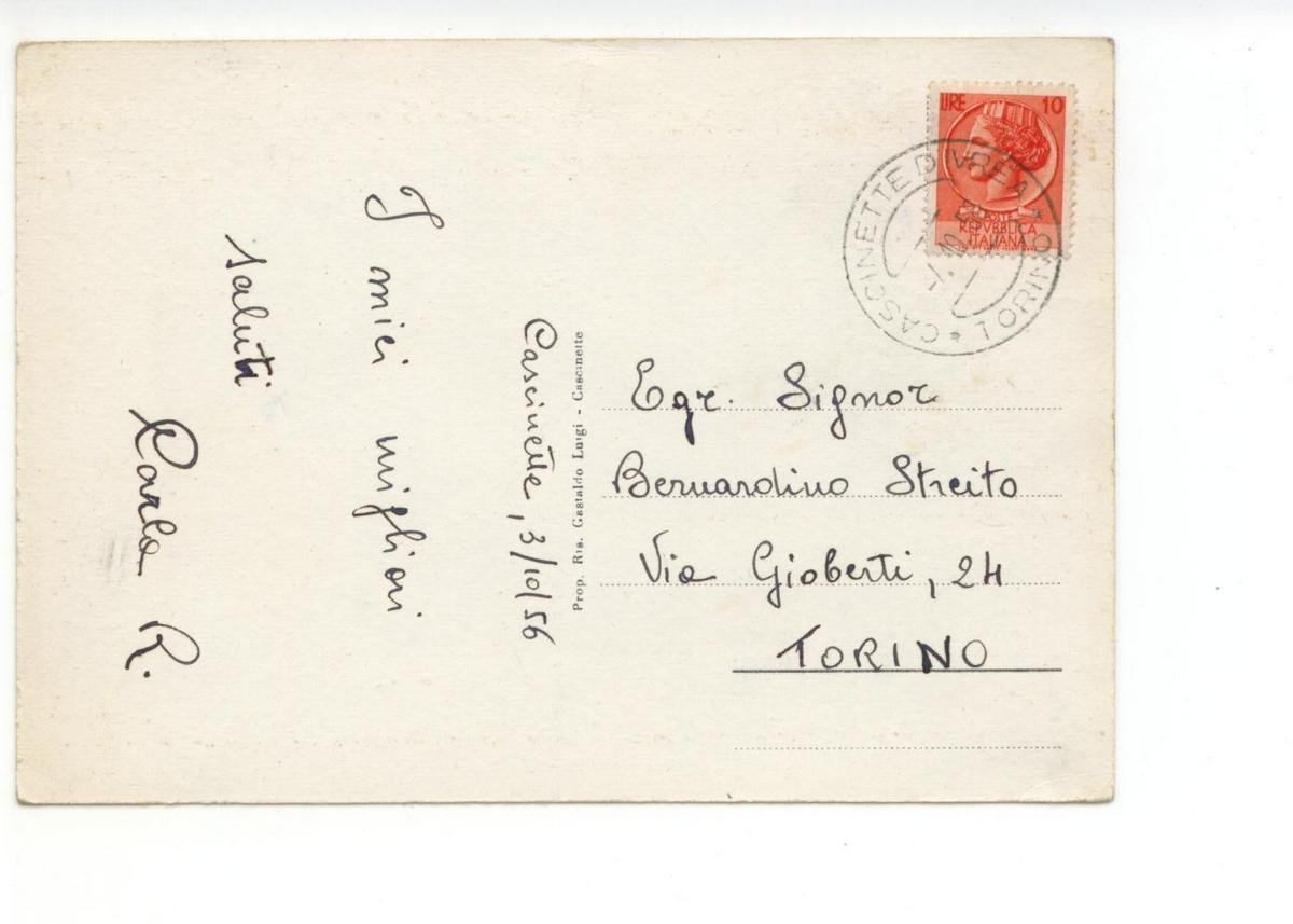 Cartolina originale, Cascinette Via Ivrea 1956; cartolina originale ill. in b. n. Cm 15x10,5 (formato grande). Viaggiata. Condizioni di conservazione Cartolina ben conservata (vedi foto). CART.2241G