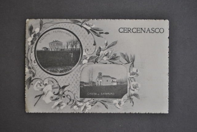Cartolina Cercenasco Torino Stazione Ferrovia Chiesa S. Firmino 1919