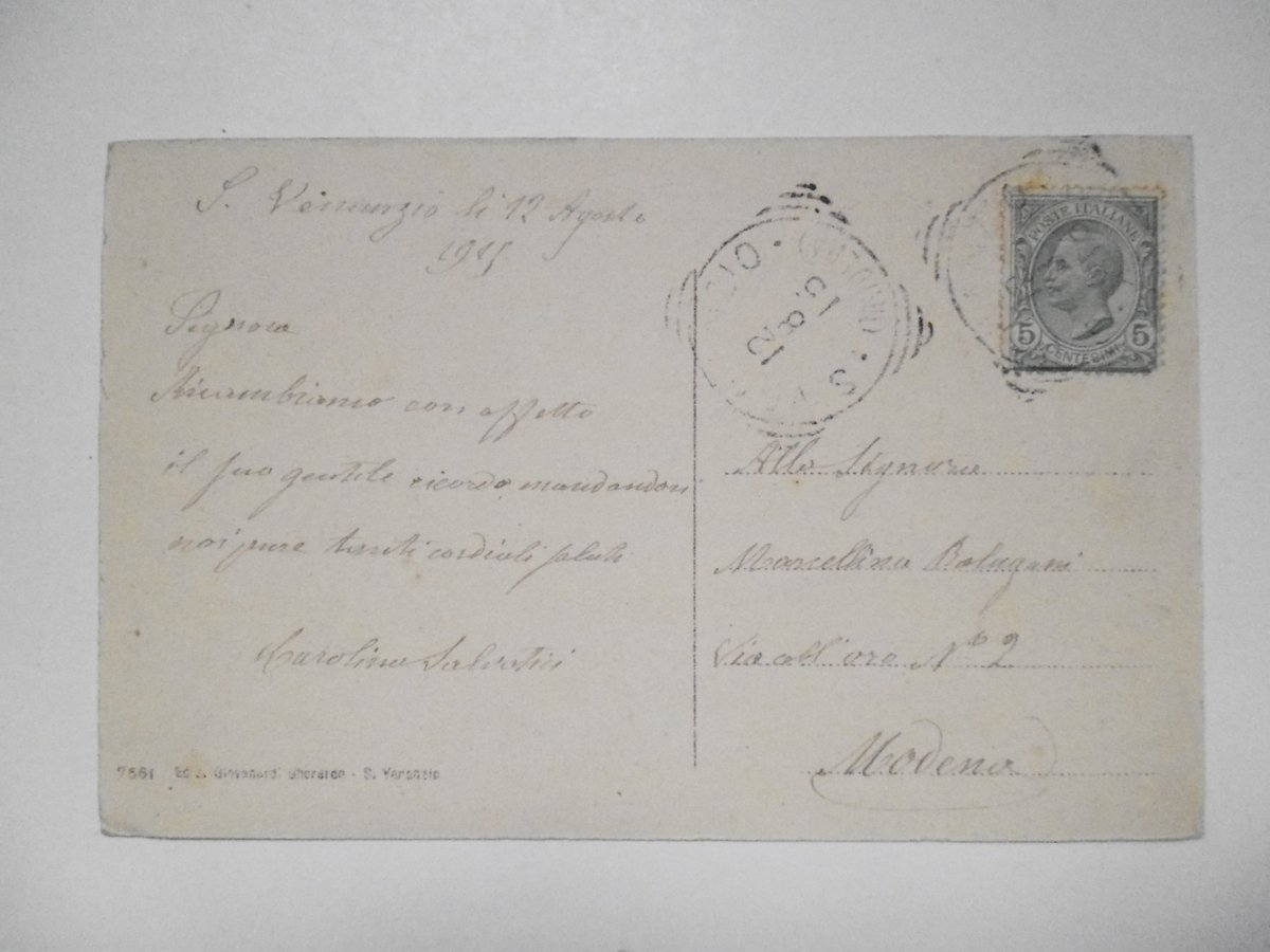 Cartolina originale, Chiesa di S. Venanzio E Via Giardini Ediz. Giovanardi Gherardo, S. Venanzio, 1915; cartolina originale ill. in b/n. Viaggiata. Figurata. Cm. 9x14. Condizioni di conservazione Cartolina molto ben conservata. CART.3154G