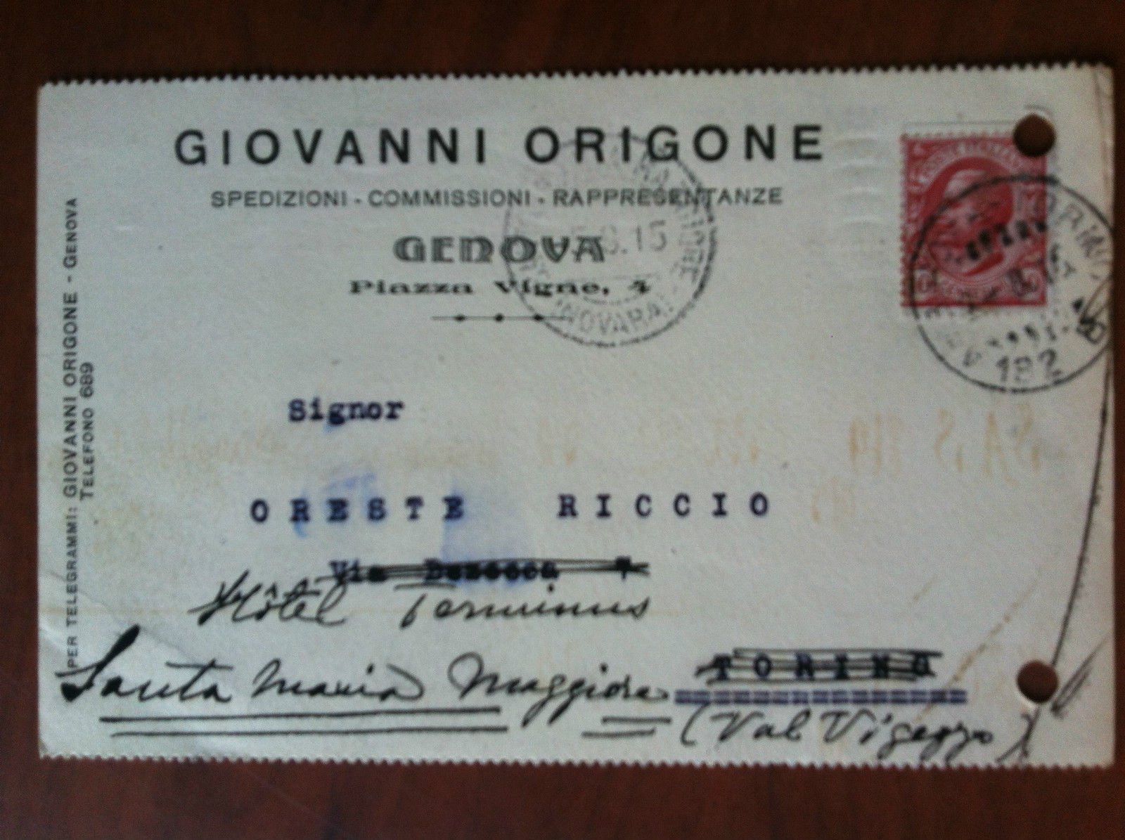 Cartolina commerciale originale Giovanni Origone Genova 1915 - E19387
