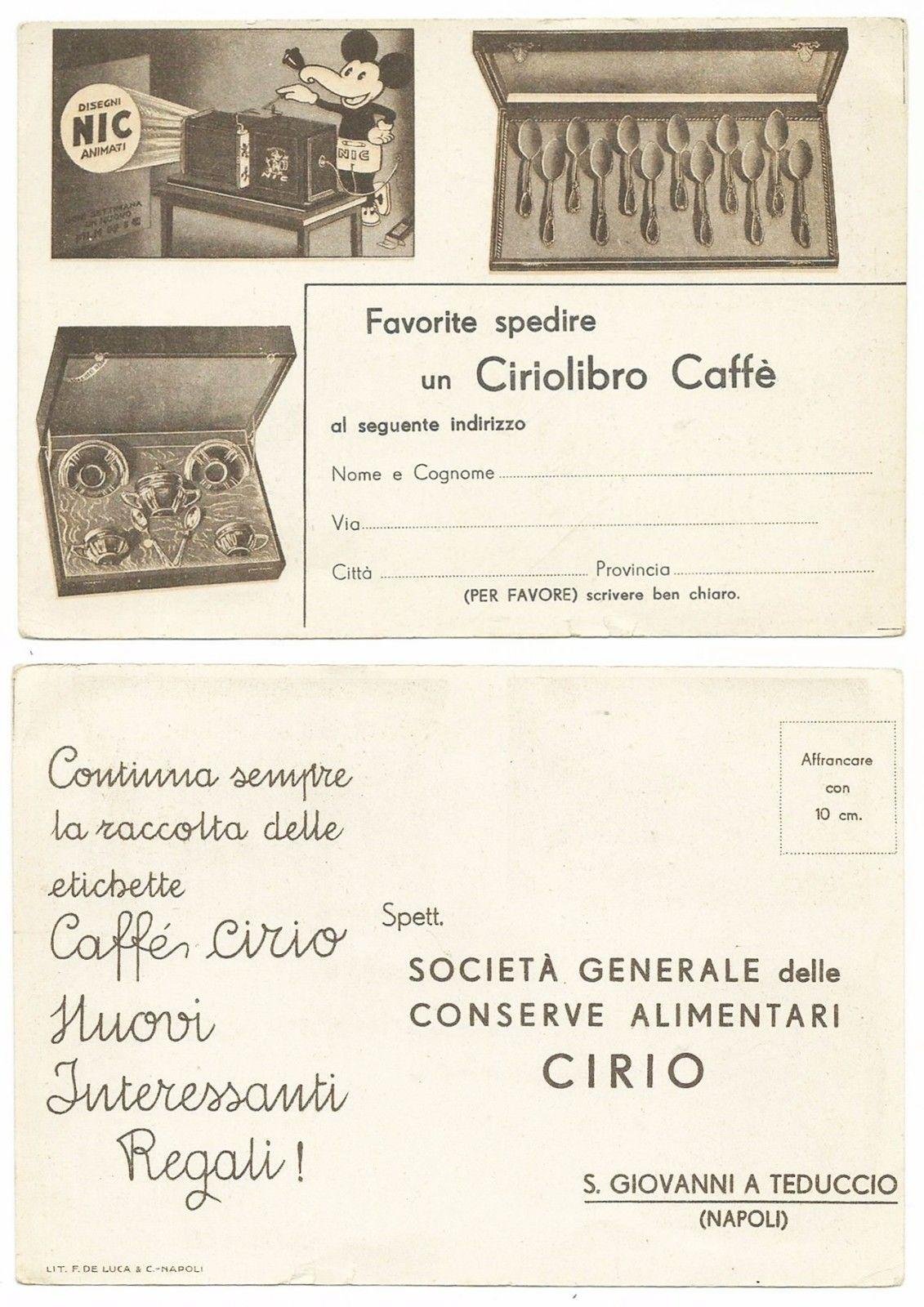 Cartolina Concorso CIRIO CAFFE' - TOPOLINO NIC