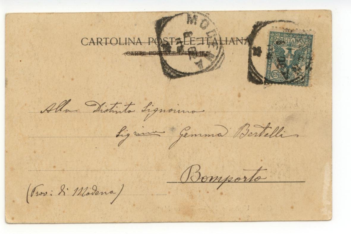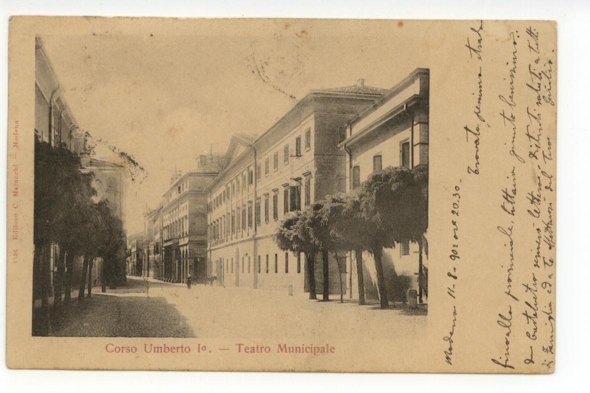 Cartolina Corso Umberto I∞ Teatro Municipale 1902 viaggiata Modena