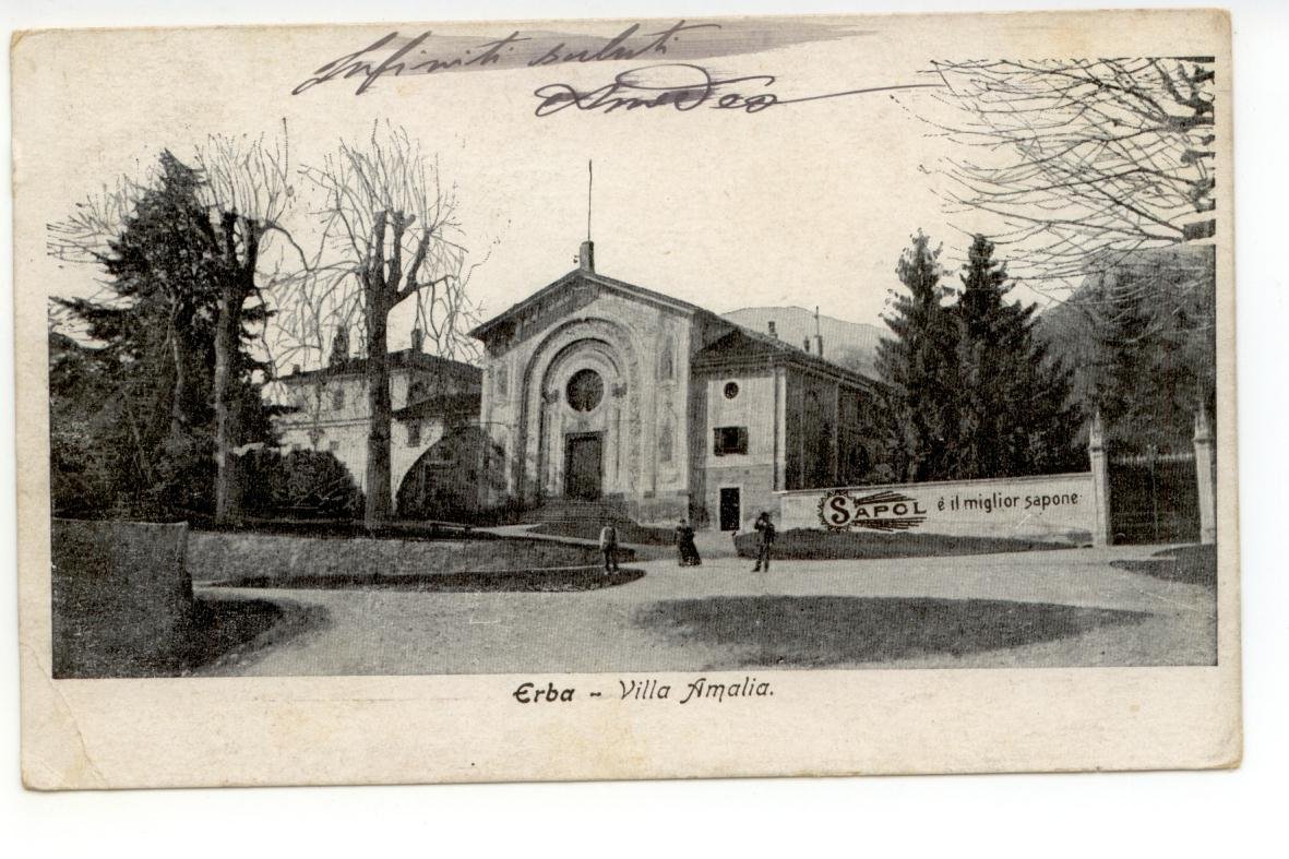 Cartolina originale, Erba Villa Amalia S. d. (primi anni del Novecento); cartolina originale ill. in b/n. Cm 14x9. Figurata; viaggiata. Condizioni di conservazione Cartolina ben conservata (vedi foto). Francobollo da 2 Cent. CART.2050G