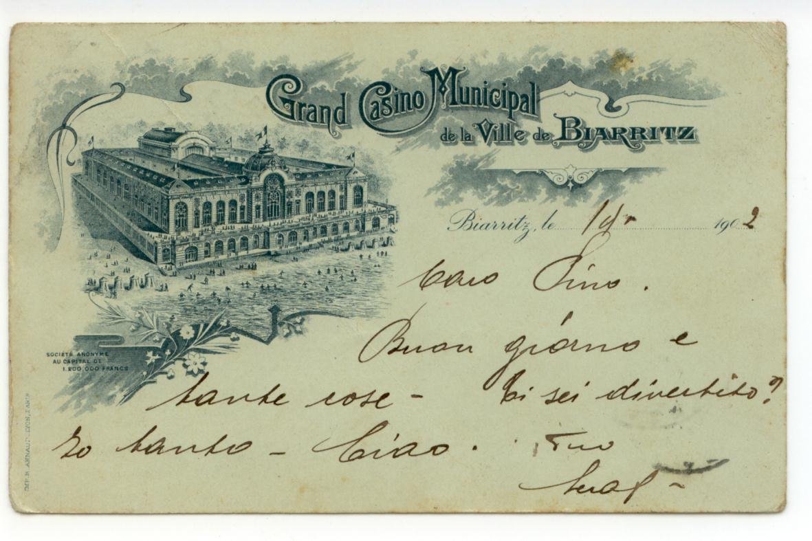 Cartolina Grand Casino Municipal de La Ville de Biarritz 1902 viaggiata Francia