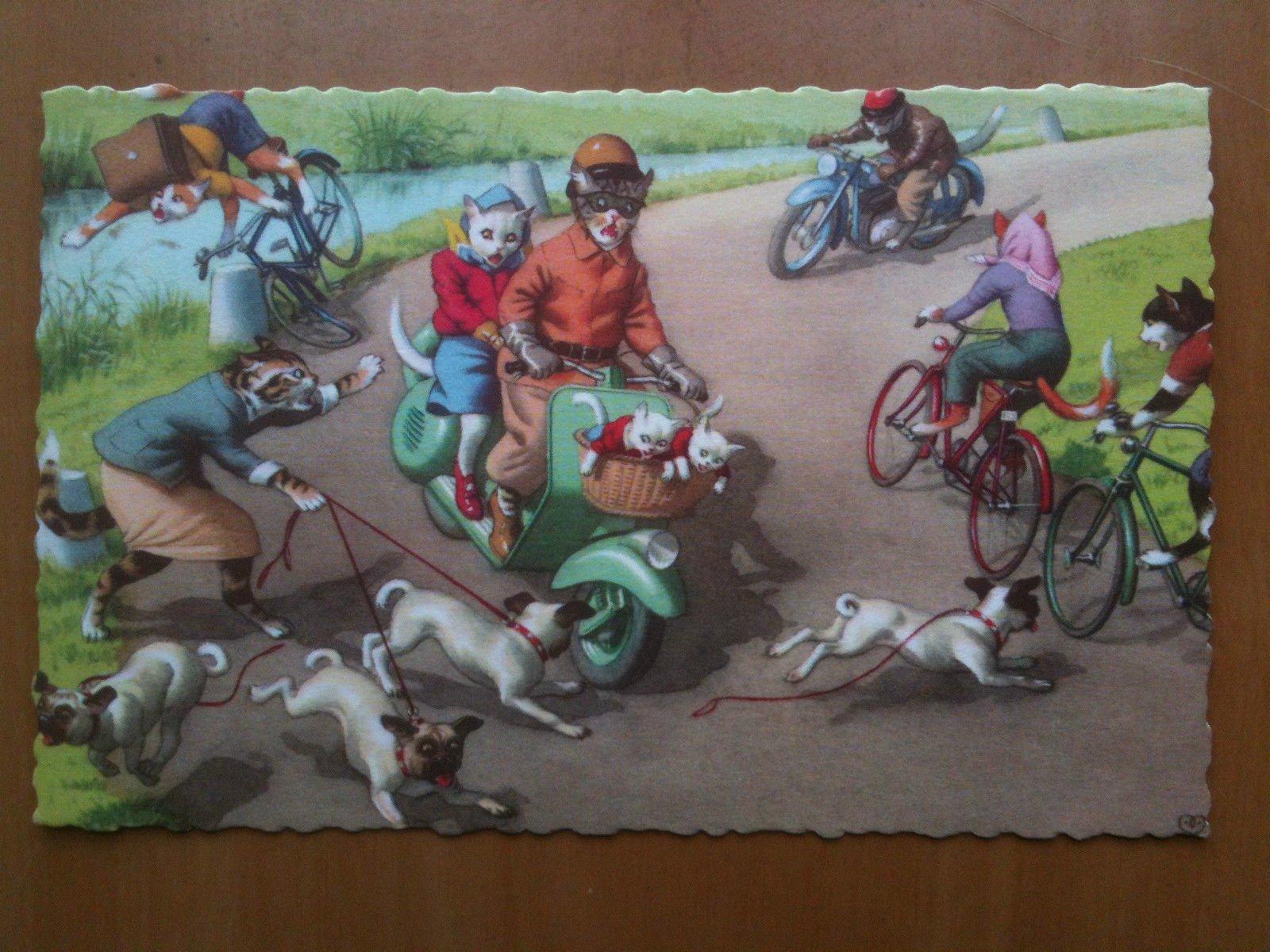 Cartolina illustrata metà '900Gatti antropomorfiin scooter non viaggiata - in buono stato e1235
