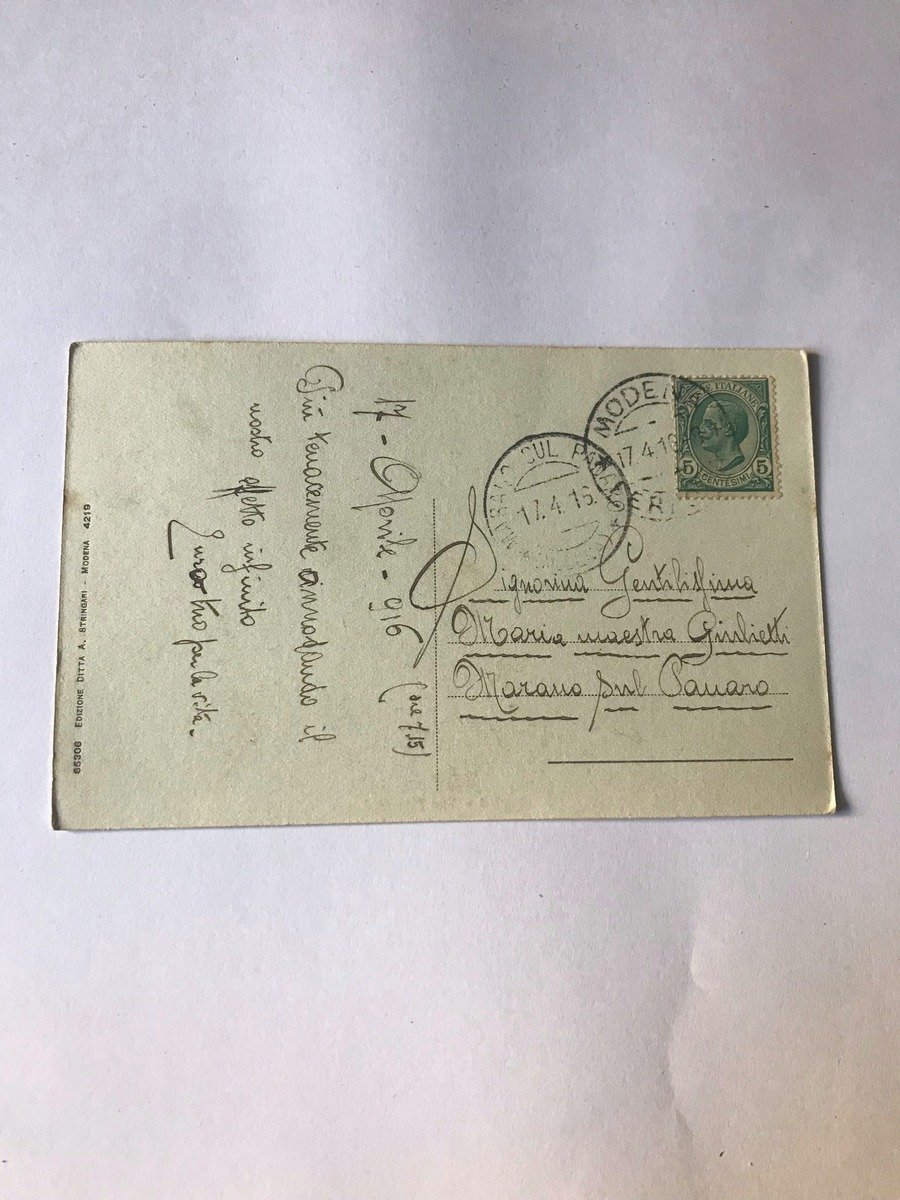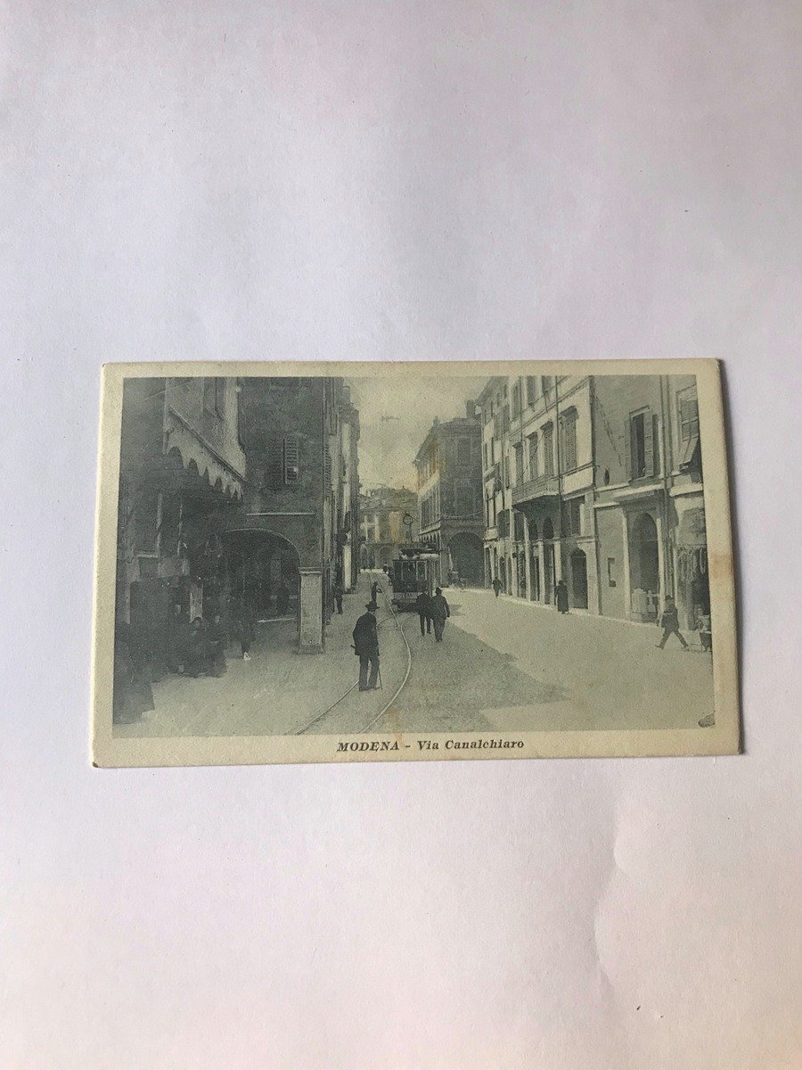 Cartolina Modena Via Canalchiaro (Modena,Emilia Romagna) 1915 Ed ditta Stringari Modena 1915 ,Cartolina in b.n. Dimensione: 8,8x14 cm. Viaggiata timbro postale 1915. Condizioni di conservazione Cartolina in ottimo stato di conservazione con minime tracce del tempo. CART.0784 blu CART.0784 blu