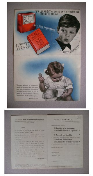 Cartolina per ricevere Omaggi da ALLEANZA Assicurazioni Popolari. 1939