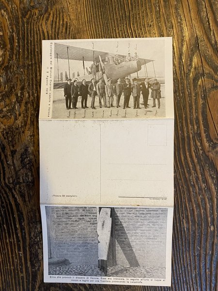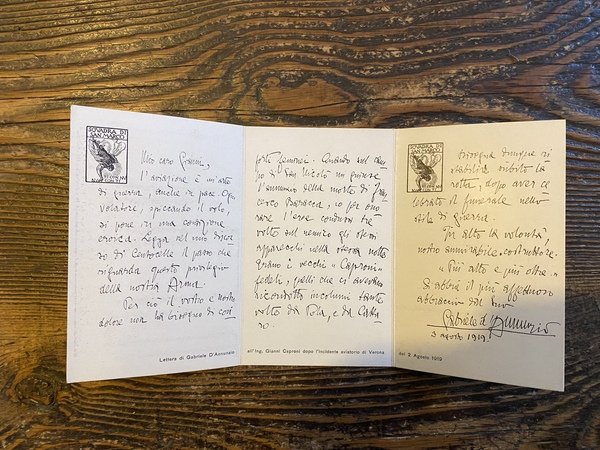 Cartolina pieghevole Riproduzione della lettera di Gabriele d'Annunzio all'Ing. Gianni Caproni dopo l'incidente aviatorio di Verona del 2 giugno 1919
